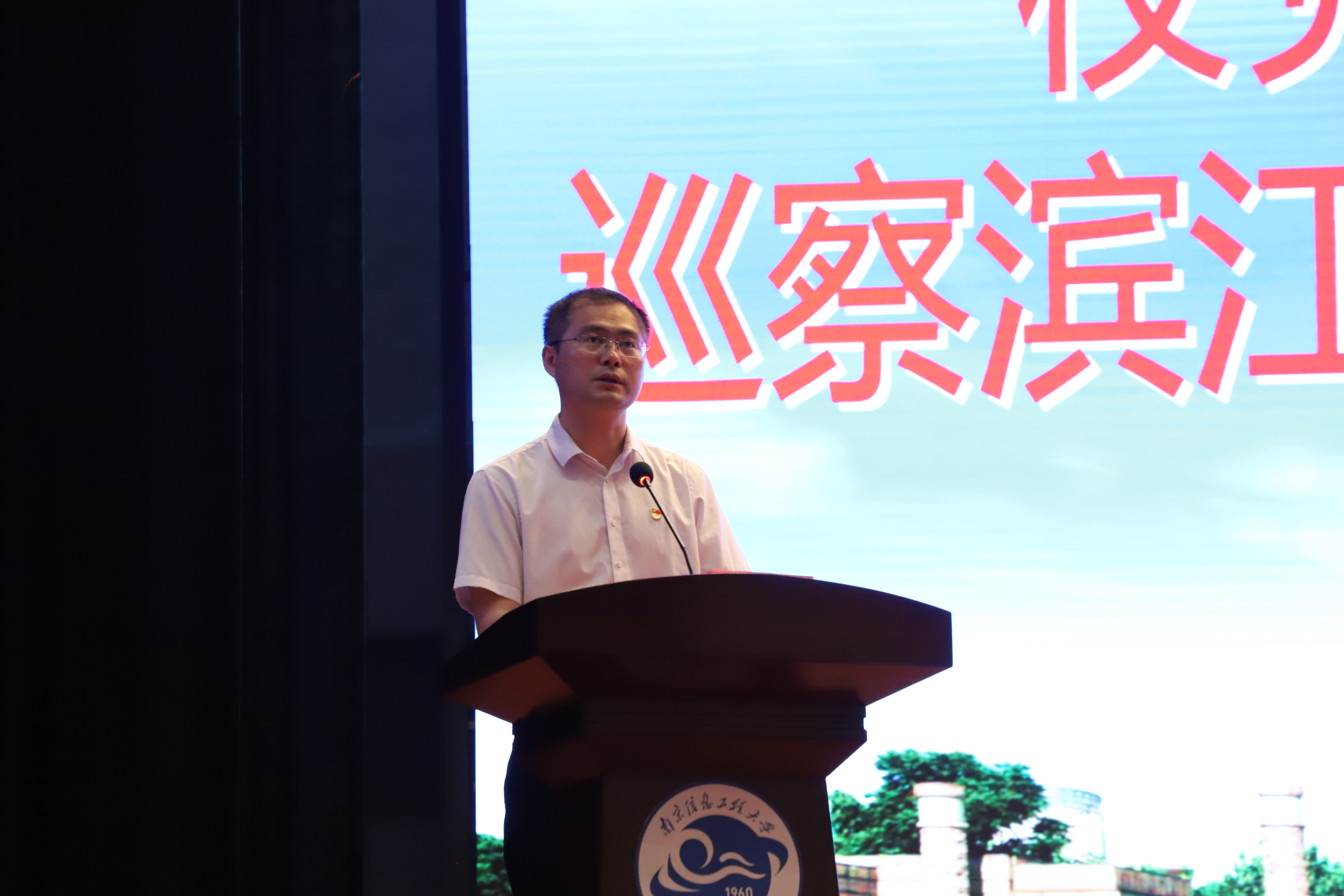 5月25日上午,校党委第一巡察组巡察滨江学院党委工作动员会在滨江大礼堂二楼报告厅召开。校党委副书记、纪委书记、第一巡察组组长王敦宝,校党委第一巡察组副组长周斌,校党委第一巡察组成员,滨江学院领导班子成员,全体教职员工,学生党支部书记以及学生代表参加了会议。会议由滨江学院党委书记左同宇主持。
