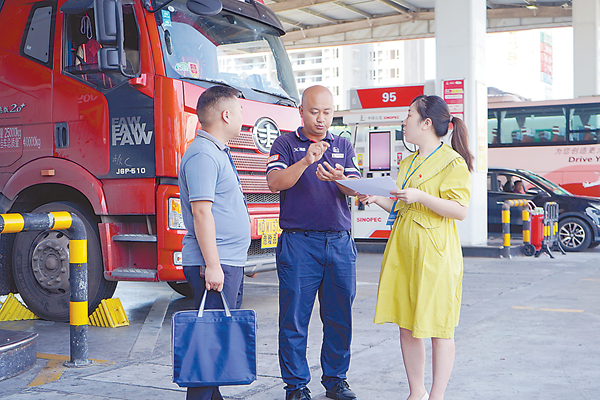 重庆市秀山土家族苗族自治县纪委监委紧盯“车轮上的腐败”,采取实地走访、翻阅台账、抽查比对等方式开展专项监督检查,着力发现私车公养等问题。图为近日,该县纪检监察干部在城区加油站了解情况。严丽 摄