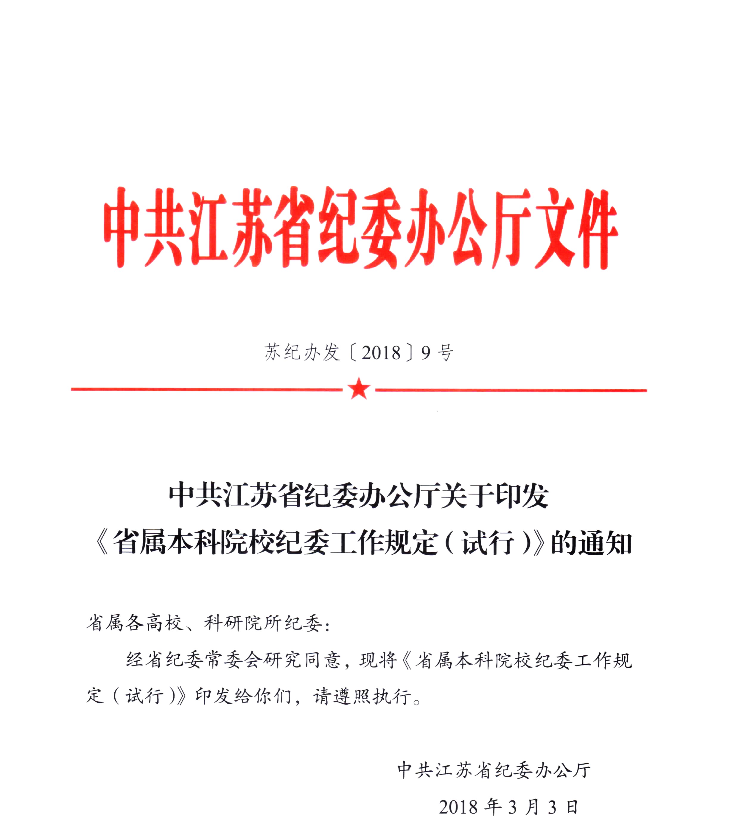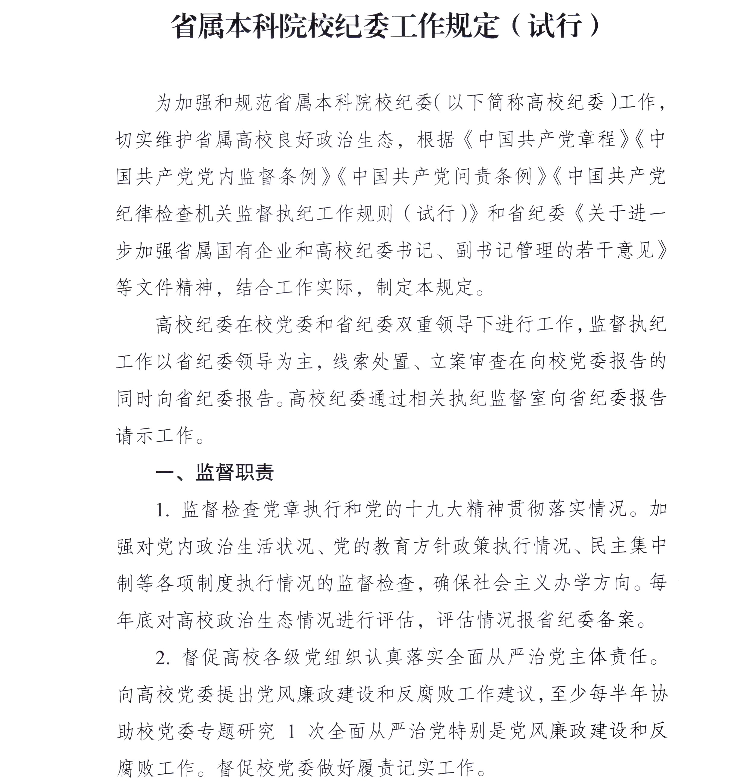 江苏省属本科院校纪委工作规定(试行)